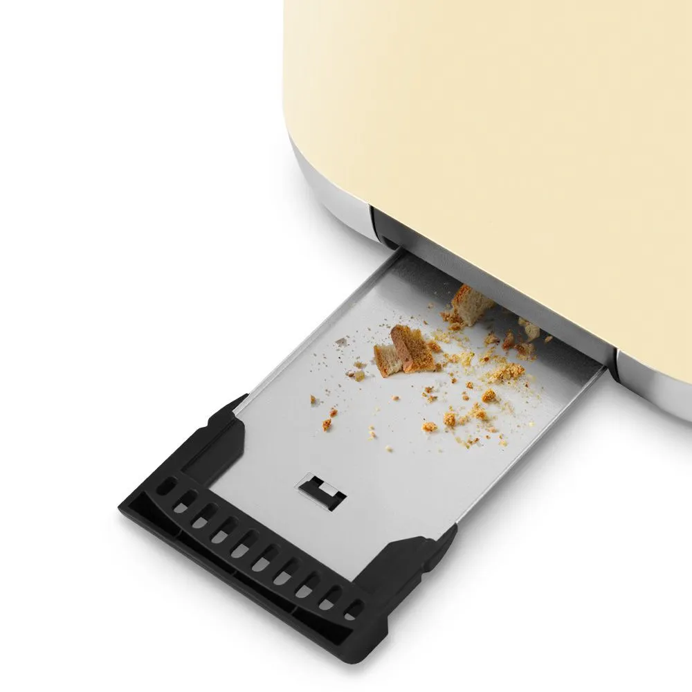 После каждой обжарки тостер легко отчистить – в дно встроен лоток для накопления крошек. Его достаточно достать из нижней части тостера, вытряхнуть и снова вернуть на место – тостер вновь готов к работе