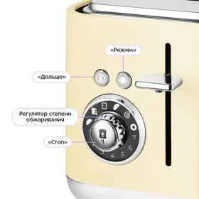 Благодаря уникальной функции «Режим» КТ-6558 может настроить время обжаривания на каждой из 7 степеней регулировки. Бейглы, зерновой хлеб или чёрный – любой вариант будет приготовлен в лучшем виде и не будет пересушен, как в обычном тостере.