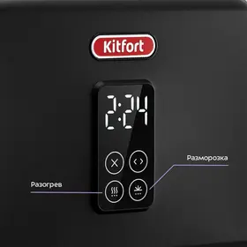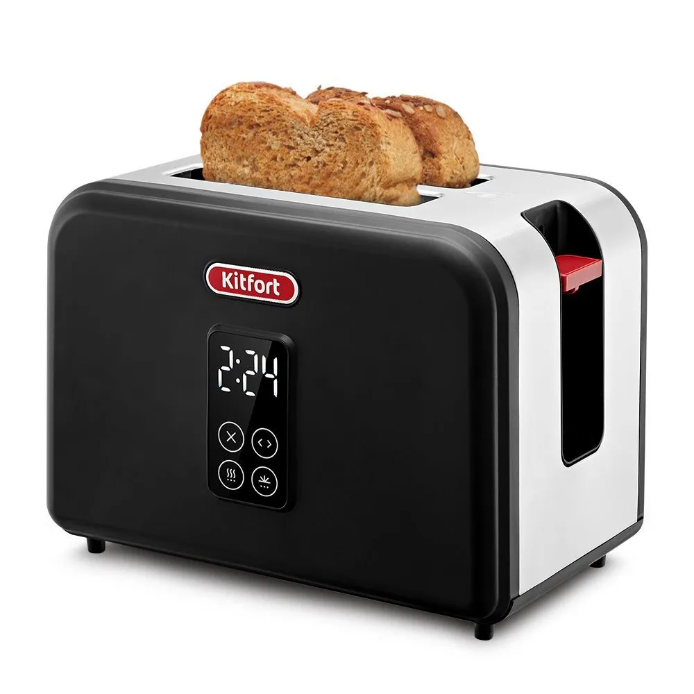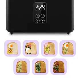 Тостер оснащён панелью управления с дисплеем и кнопками для выбора степени обжарки тостов. Режим «Разогрев» служит для подогрева уже остывших тостов. Режим «Разморозка» позволит разогреть, а затем приготовить хрустящий хлеб прямо из морозилки.