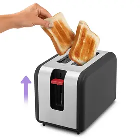 Загруженные тосты автоматически центрируются, чтобы их поджарка с двух сторон была равномерной. Ломтики хлеба должны свободно помещаться в слоты. Максимальная толщина тостов не должна превышать 1,5-2 см.По окончании приготовления тостер автоматически отключается, а тосты поднимаются вверх, чтобы их было удобнее извлечь.