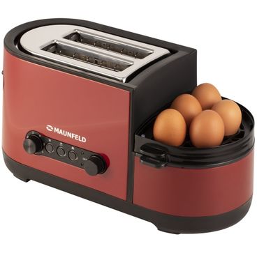 Режимы работы: разогрев, разморозка, приготовление яичницы, варка яиц, варка на пару. Особенности: количество отсеков для тостов – 2, съемный поддон для крошек, 7 степеней прожарки.