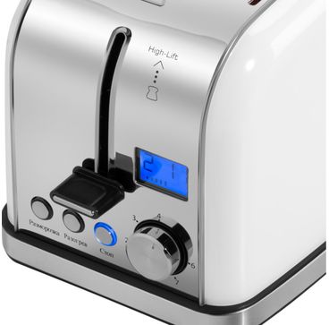 - 7 степеней обжарки позволяют делать тосты из разных сортов хлеба (белого, зернового, чёрного и т.д.). Степень обжаривания выбирается с помощью регулятора и отображается чёрточками на экране. Также на дисплее показывается обратный отсчёт времени приготовления