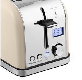 - Выбор одного из 3 режимов работы происходит с использованием кнопок с LED подсветкой, расположенных на корпусе тостера.