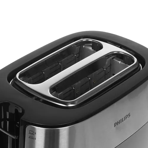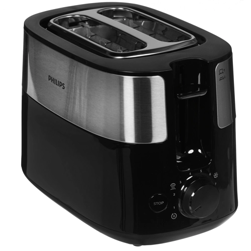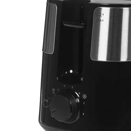 Тостер представлен в черном цвете с серебристыми вставками. Модель помещена в термоизолированный корпус из пластика, поэтому не греется снаружи и не сможет обжечь при случайном прикосновении. Кроме того, прибор можно безопасно отключить уже после запуска программы, просто использовав кнопку отмены.