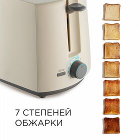 RED solution RT-411 — тостер мощностью 700 Вт с 7 степенями обжарки. По готовности прибор сам выбрасывает тосты. Благодаря автоматическому центрированию хлеб равномерно обжаривается, а подставка для подогрева позволяет сделать утренние булочки вечером снова горячими. Съемный поддон для крошек облегчает очистку по окончании приготовления.