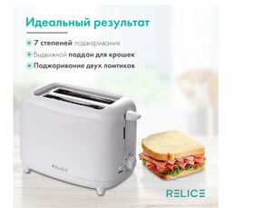 Тостер RELICE позволит приготовить вкусный и сытный завтрак за считанные секунды. Мощность 700 Вт обеспечивает быстрый нагрев прибора, без нагревания корпуса, сводя время приготовления тостов к минимуму. Вместимость – 2 тоста. Тостер вертикальный имеет 7 степеней прожарки. Для удобства в использовании имеется выдвижной поддон для крошек. Кухонный тостер имеет функцию отмены.