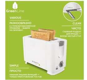 Тостер SC-TM11024 с 6 степенями равномерной прожарки. Компактный размер прибора и система хранения шнура позволят сэкономить место на Вашей кухне, а выдвижной поддон для крошек сохранит стол чистым. Яркое сочетание цветов тостера SC-TM11024 идеально впишется в интерьер Вашей кухни!