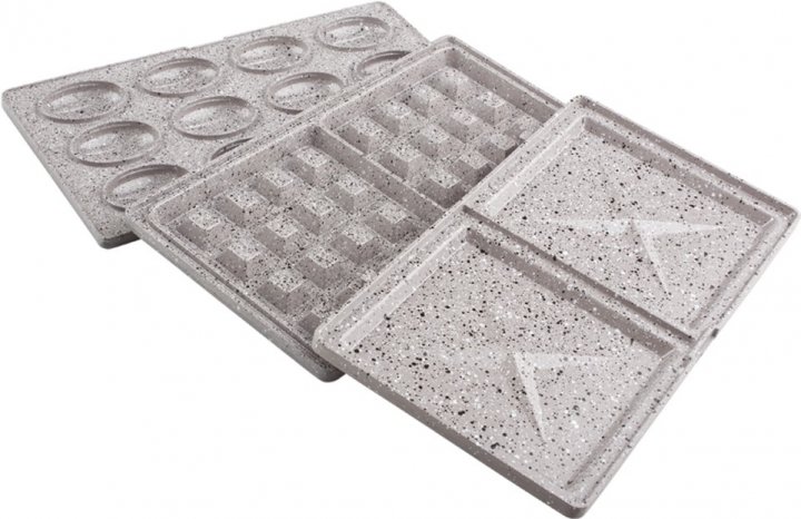 панель для сэндвичей на 2 порции, панель для орешков на 6 порций (12 полуформ), панель для вафель на 2 порции; керамическое покрытие