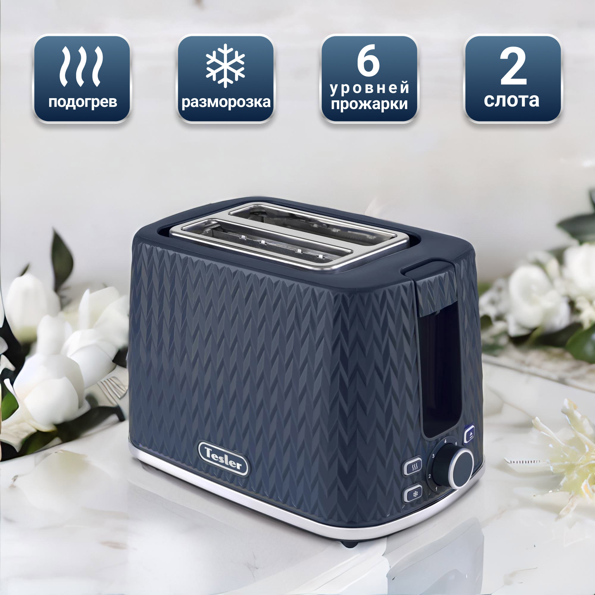 Хрустящие гренки с чесноком для большой компании, или ароматные тосты к завтраку — это просто и быстро! Тостер Tesler TT-204 оснащен двумя отсеками для хлеба, поэтому процесс приготовления не займет много времени. Элегантный корпус с геометрическим узором дополнен хромированными акцентами, благодаря чему тостер выигрышно смотрится на любой столешнице.