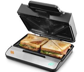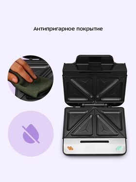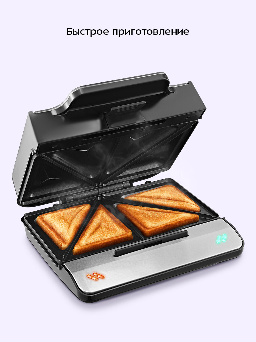 Бутербродница КТ-4611 — ваш помощник в создании разнообразных блюд, рассчитанная на две порции. Она позволяет готовить не только классические бутерброды с ветчиной и сыром, но и сладкие, например, с яблоками и творогом. Мощность устройства 750 Вт.