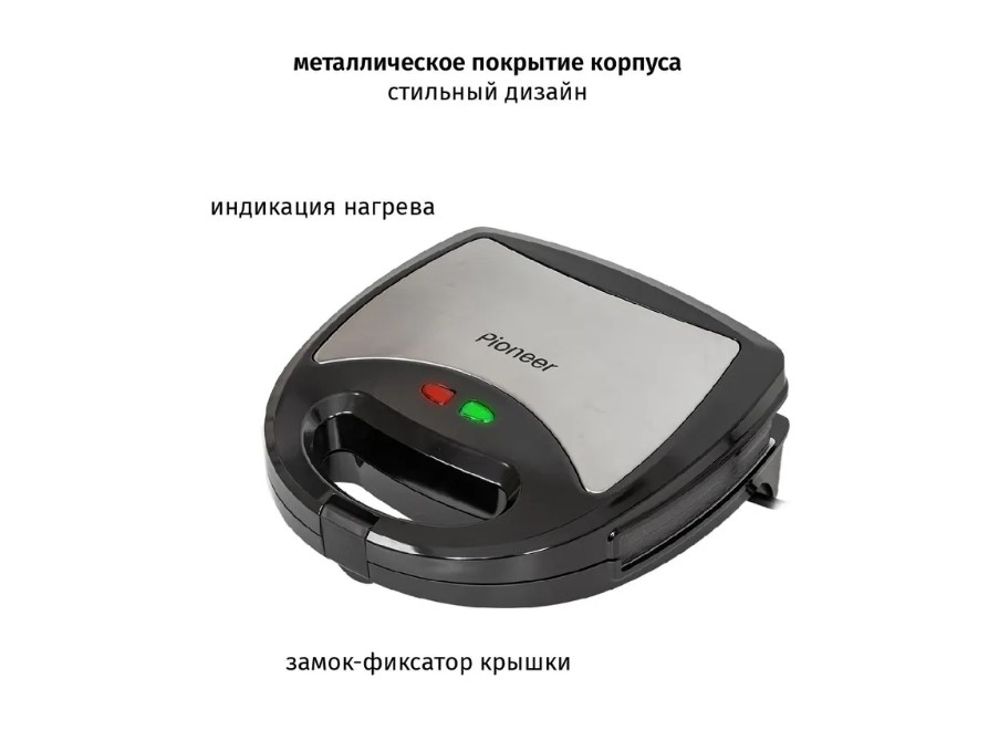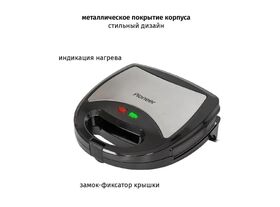 Для сторонников здорового образа жизни и полезного питания бренд Pioneer представляет свою новинку – стильный мультипекарь Pioneer 5 в 1 мощностью 850 Вт с комплектом из 5 пар сменных панелей с антипригарным покрытием, фиксатором крышки и индикацией работы. Мультипекарь SM520D 5 в 1 от Pioneer - это качественное многофункциональное устройство, заменяющее вафельницу, сэндвичницу и орешницу. Достаточно менять панели и получать удовольствие от вкуса нежных венских вафель на завтрак, сэндвичей с румяной корочкой или самого вкусного, ароматного печенья – «орешков» с вареной сгущенкой. Также вы сможете приготовить вкуснейшие пончики-кексы или воспользоваться гриль-панелью для приготовления полезных обедов и ужинов.