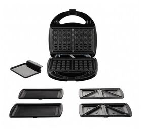 панель для бельгийских вафель на 2 порции, панель для сэндвичей на 4 порции; размер одной съемной панели 250 × 132 × 9 мм; более 40 видов съемных панелей - приобретаются отдельно; комплектация: мультипекарь, книга рецептов, руководство по эксплуатации, сервисная книжка, комплект съемных панелей для приготовления RAMB-01, комплект съемных панелей для приготовления RAMB-02, комплект съемных панелей для приготовления RAMB-03, съемный поддон для сбора масла/жира