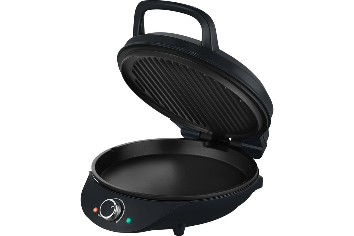 Антипригарное покрытие помогает не прилипать тесту и другим продуктам в процессе приготовления и позволяет готовить с минимальным количеством масла. Также антипригарное покрытие панелей облегчает чистку, что особенно важно, так как панели являются несъемными. Пиццамейкер оснащен регулятором температуры и индикаторами питания и нагрева. Прорезиненные ножки не дают прибору скользить по столу во время готовки.