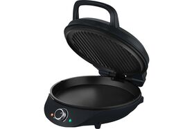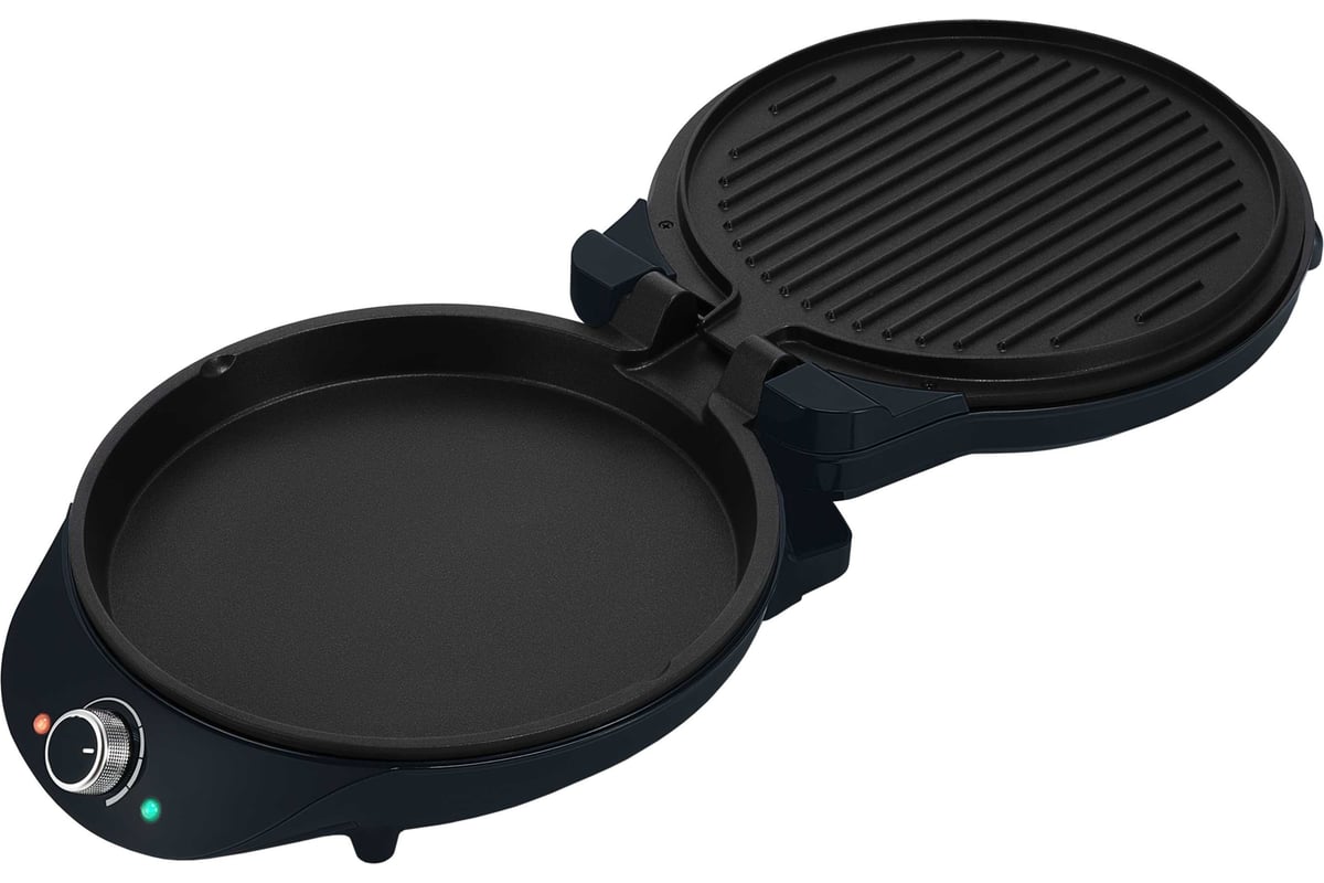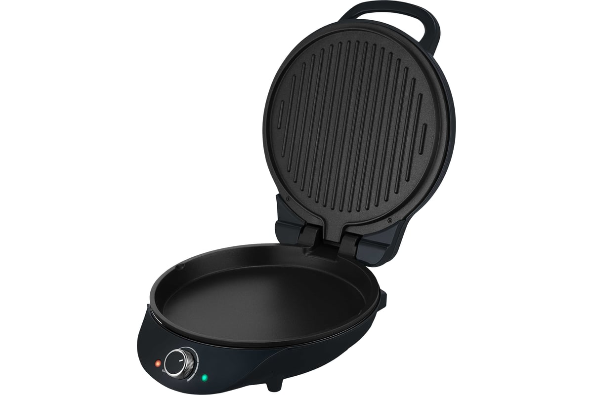 Конструкция пиццамейкера позволяет готовить в двух режимах: двустороннем и одностороннем. В двухстороннем режиме прибор закрывается крышкой. В одностороннем режиме верхняя панель откидывается на 180°, и пиццамейкер превращается в большую жаровню — для приготовления можно использовать обе панели.