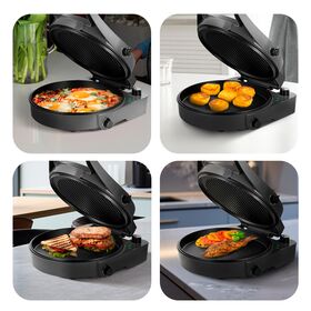 Конструкция пиццамейкера позволяет готовить в одностороннем режиме. Верхняя панель может откидываться на 180°. В данном режиме пиццамейкер превращается в большую жаровню — для приготовления можно использовать обе панели.