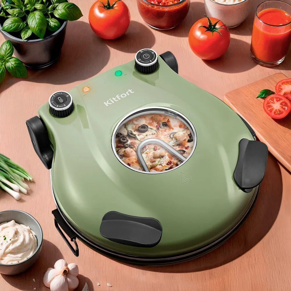 Пиццамейкер КТ-4642 идеально подходит для приготовления пиццы, пирогов, хлеба и другой выпечки. Технология приготовления пиццы в пиццамейкере максимально приближена к профессиональной печи.