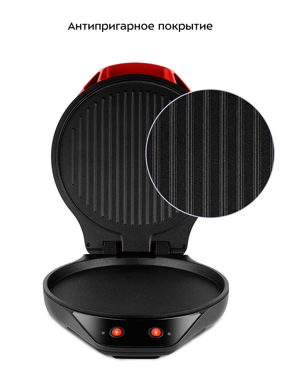 Антипригарное покрытие помогает не прилипать тесту и другим продуктам в процессе приготовления и позволяет готовить с минимальным количеством масла или без него. Также антипригарное покрытие панелей облегчает чистку.