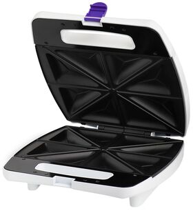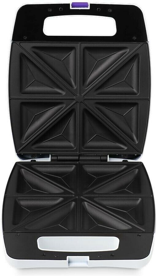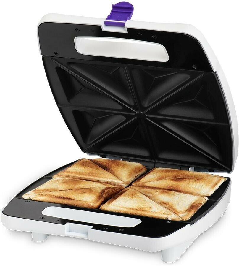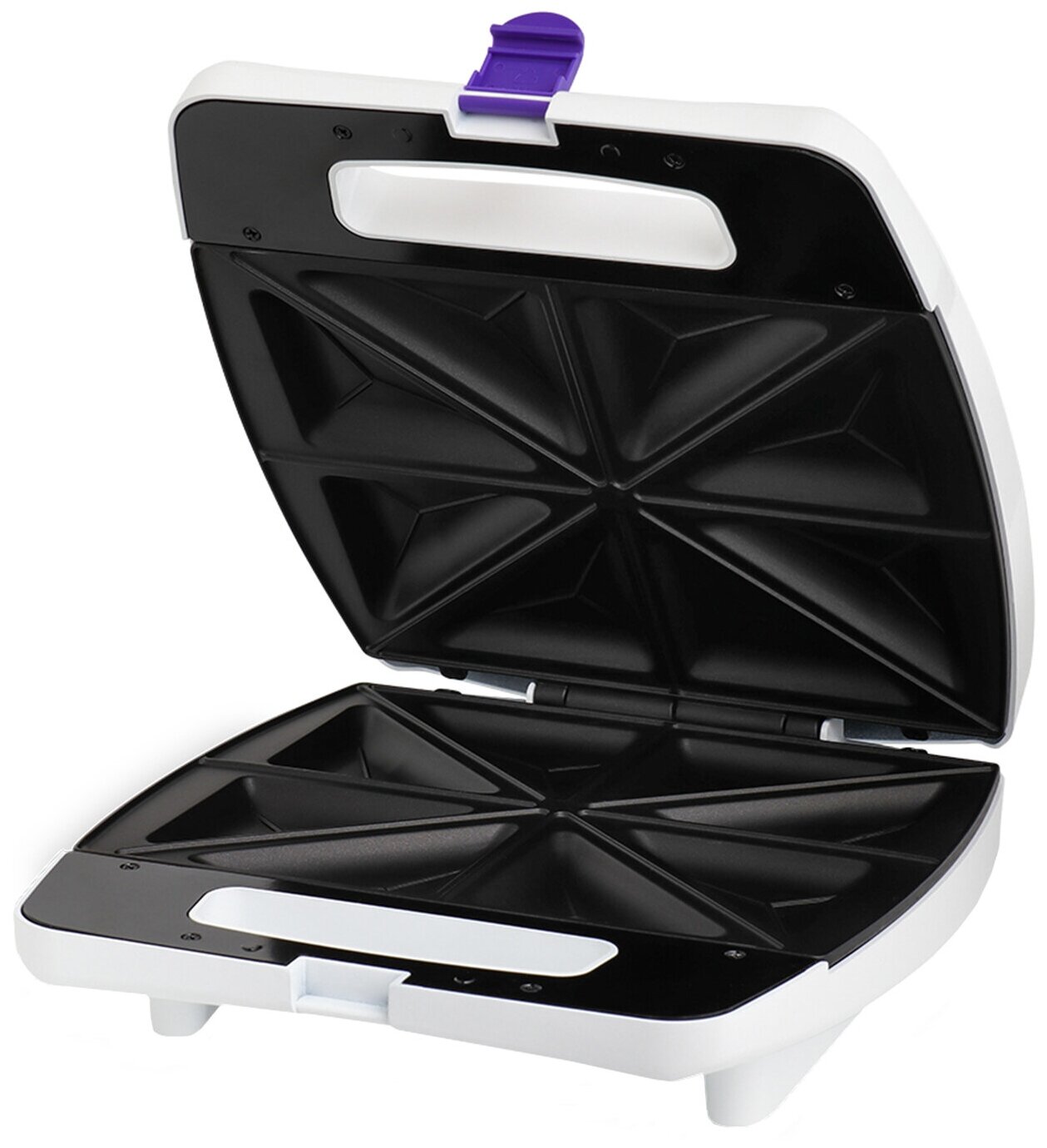 Электрическая бутербродница KT-1669 поможет приготовить самые разнообразные бутерброды. В бутерброднице можно готовить не только привычные бутерброды с ветчиной и сыром, но и сладкие бутерброды, например с яблоками и творогом, пирожки из слоеного теста с разнообразными начинками, драники и многое другое. Бутербродница KT-1669 рассчитана на 4 порции бутербродов из хлеба для тостов. Благодаря большому размеру панелей можно быстро приготовить еду для всей семьи. За один раз можно приготовить 8 треугольных бутербродов.
