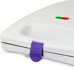 Также антипригарное покрытие панелей облегчает чистку, что особенно важно, так как панели являются несъемными. Бутербродница оснащена нагревательными элементами в каждой половине, термостатом для поддержания температуры поверхностей, индикаторами питания и нагрева. Благодаря прорезиненным ножкам бутербродница не скользит по столу. На нижней части корпуса расположен держатель шнура, обеспечивающий удобство переноски и хранения.