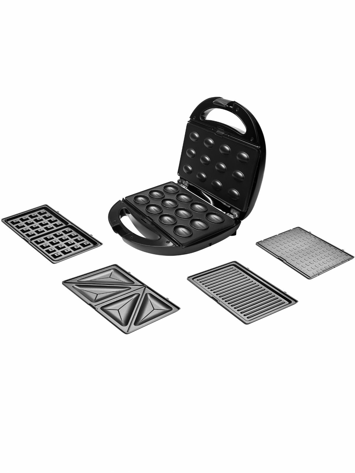 5 пар съемных панелей: сэндвич, гриль, венская вафля, орешки, тонкая вафля.