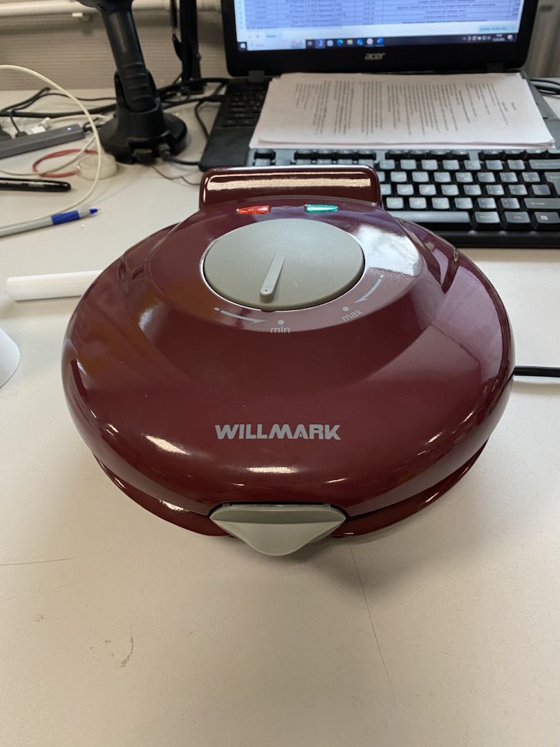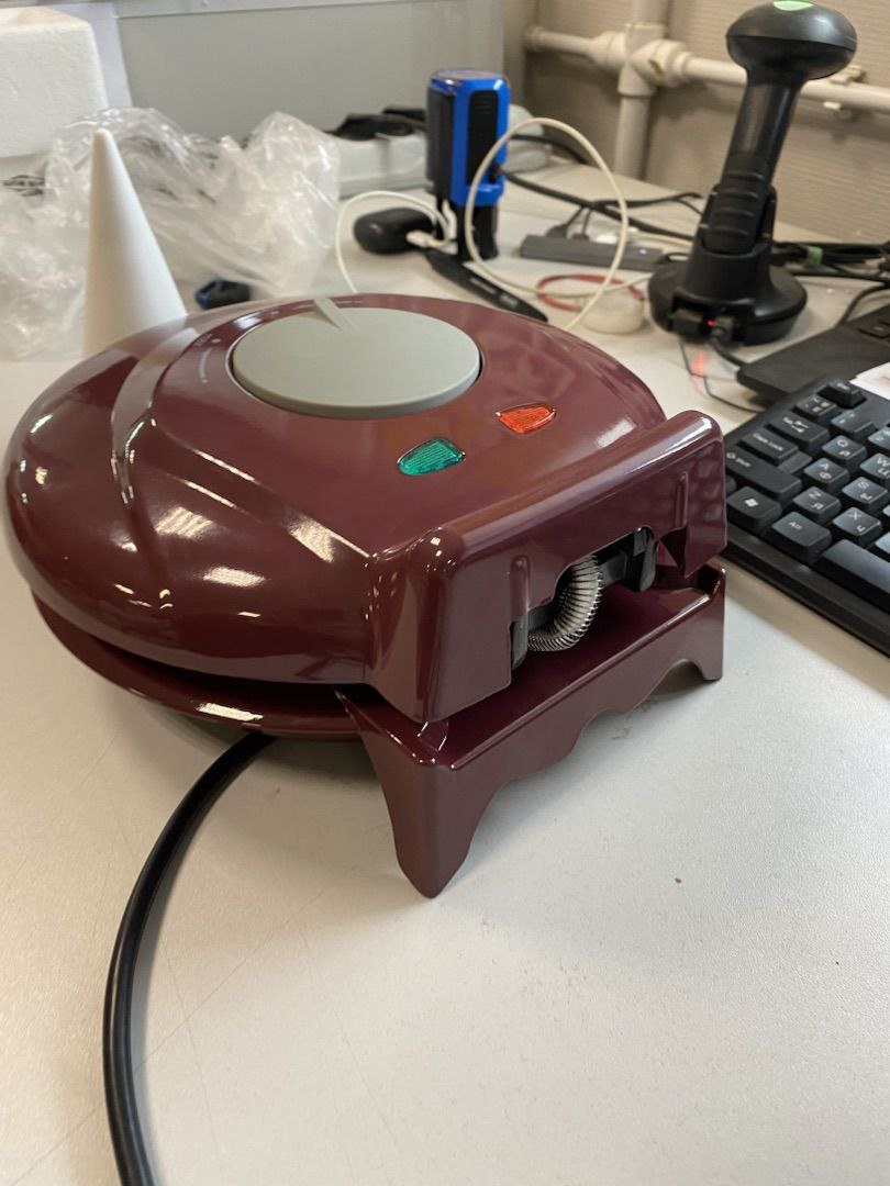 Вафельница Willmark WM-103R 2001181 приготовит вкусные хрустящие тонкие вафли, а при помощи специального конуса в комплекте, можно сделать из вафель рожки для мороженного. Круглая рабочая поверхность покрыта антипригарным покрытием, которое позволяет использовать меньше масла при выпечке. Мощности 750 Вт достаточно для быстрого разогрева пластин, а также хорошей выпечки. Корпус электровафельницы выполнен из термостойкого пластика благородного красного цвета. На крышке расположен индикатор готовности прибора к работе и терморегулятор, с помощью которого можно изменить интенсивность нагрева и цвет вафель. Защелка прижимает крышку и равномерно распределяет тесто.