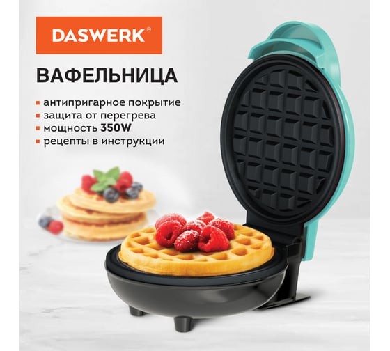 Электровафельница антипригарная DASWERK WM-3 — идеальное решение для любителей вкусных вафель! Эта электрическая вафельница мощностью 350 Вт позволяет быстро и удобно готовить венские и бельгийские вафли, а также овощные и сырные варианты. Благодаря диаметру жарочной поверхности 12 см, вы сможете выпекать аппетитные вафли за считанные минуты.