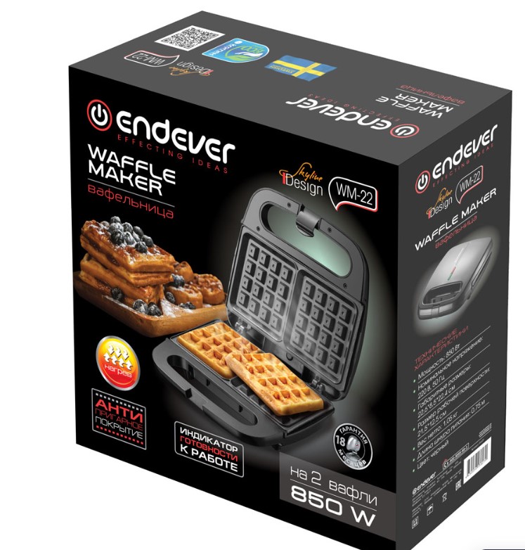 Электрическая вафельница Endever Skyline WM-22 – это удобство для быстрого завтрака и экономия времени. С помощью вафельницы, вы сможете выпекать: венские вафли, бельгийские вафли, дранники, оладьи, творожные, сырные и овсяные вафли.