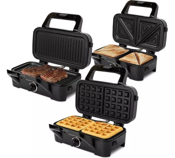 Вафельница 3в1 KITFORT КТ-1674 позволяет испечь бельгийские вафли, приготовить бутерброды, тосты, сосиски, мясо и овощи гриль, а так же многое другое.