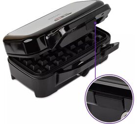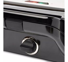 Набор из 3 пар сменных панелей позволяет готовить разнообразные блюда. Благодаря возможности снимать панели, их легко мыть после готовки. Зажим на ручке удерживает крышку вафельницы в закрытом состоянии. Это удобно в готовке, при транспортировке и хранении.