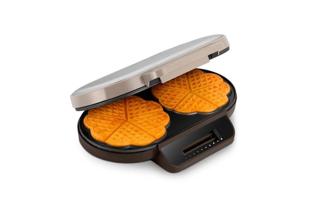 С помощью электрической вафельницы КТ-3637 вы сможете печь вафли в форме цветка, которые при желании можно разделить на маленькие сердечки. Вафельница рассчитана на приготовление 2 вафель в форме цветка или 10 маленьких вафель в форме сердечек.