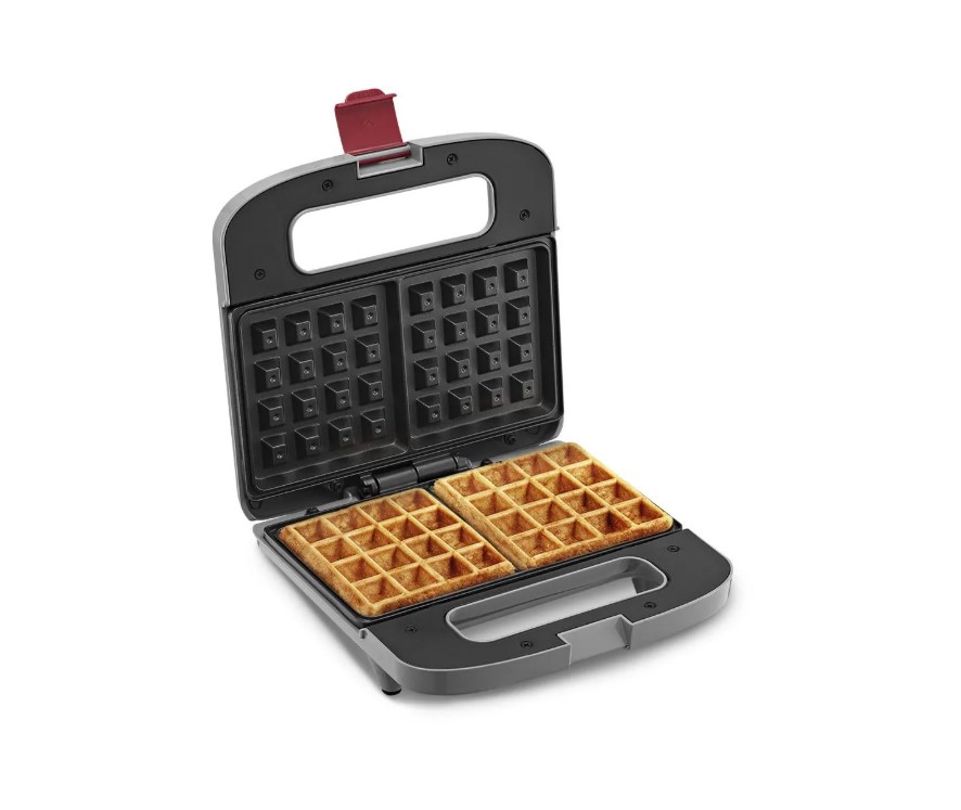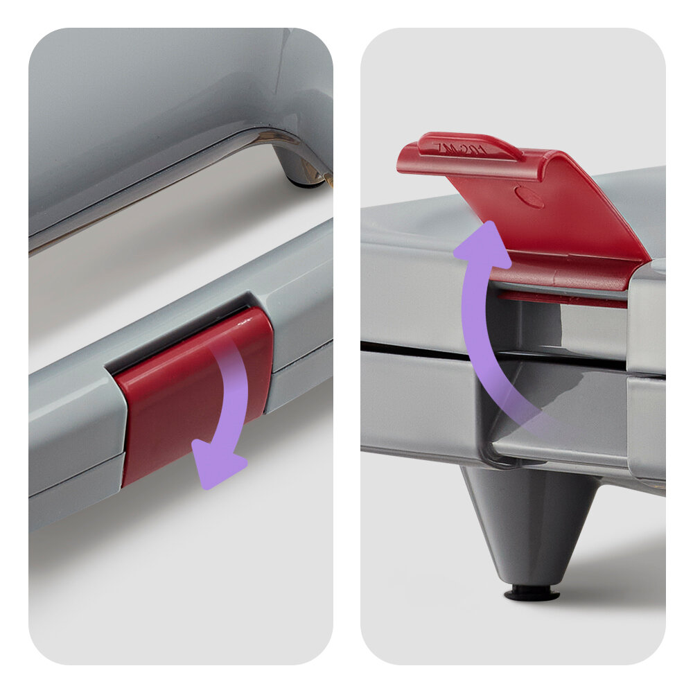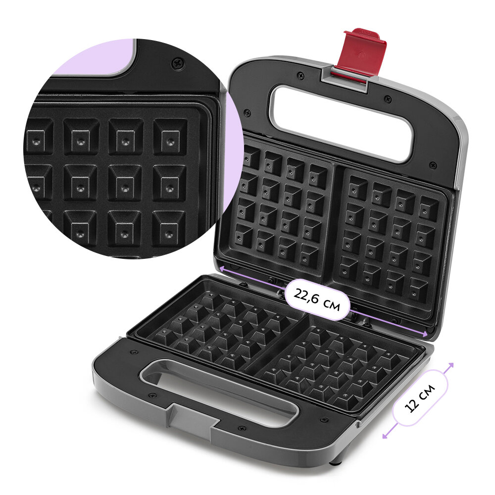 Зажим на ручке удерживает крышку вафельницы в закрытом состоянии. Это удобно в готовке, при транспортировке и хранении.