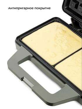 Антипригарное покрытие панелей вафельницы не дат прилипнуть тесту в процессе приготовления и позволяет готовить с минимальным количеством масла. Также антипригарное покрытие облегчает чистку панелей.