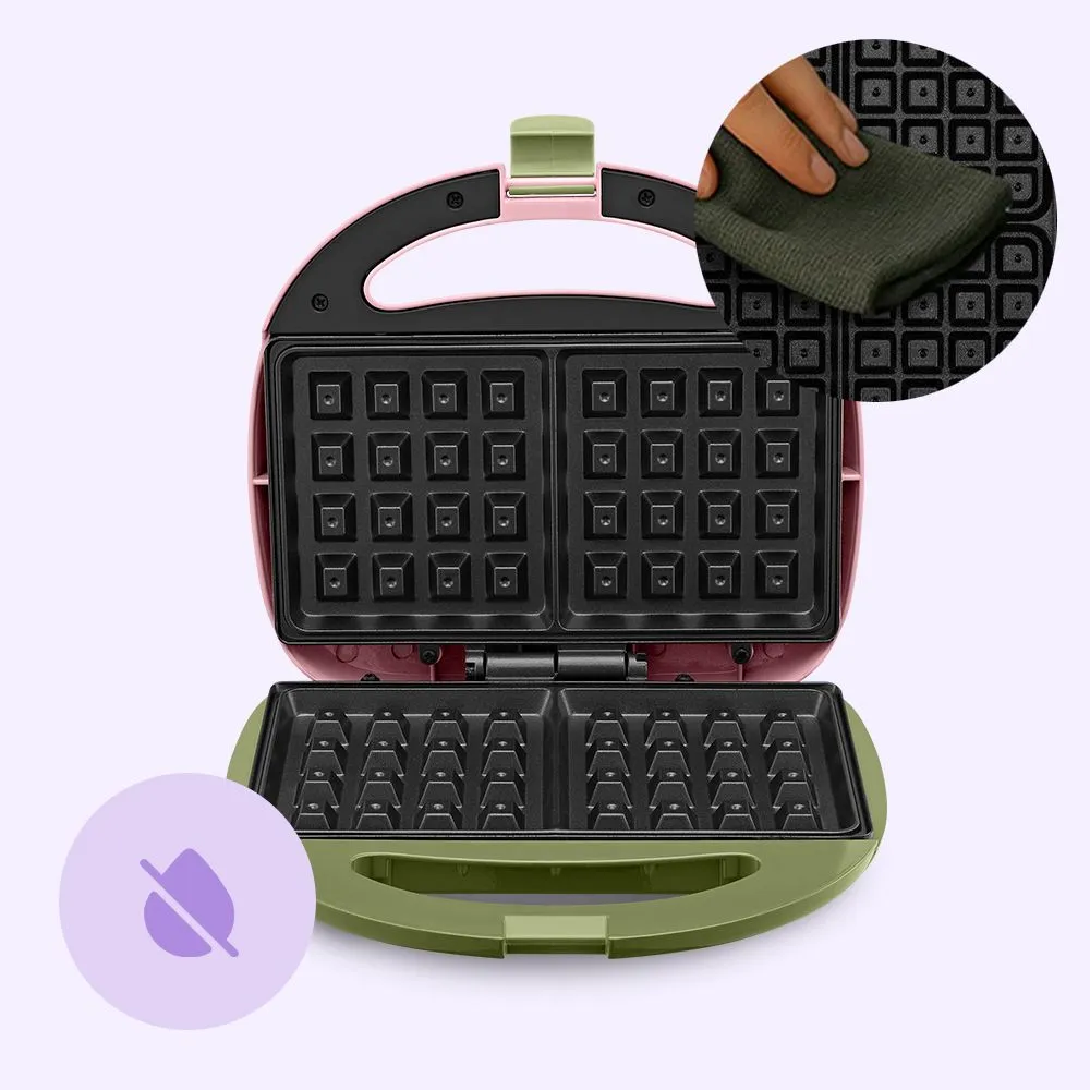 Благодаря ручке с фиксатором вафельница становится максимально безопасной для использования во время готовки и хранения. Также она надёжно удерживает вафельницу в закрытом положении, предотвращая ожоги паром или горячим тестом.