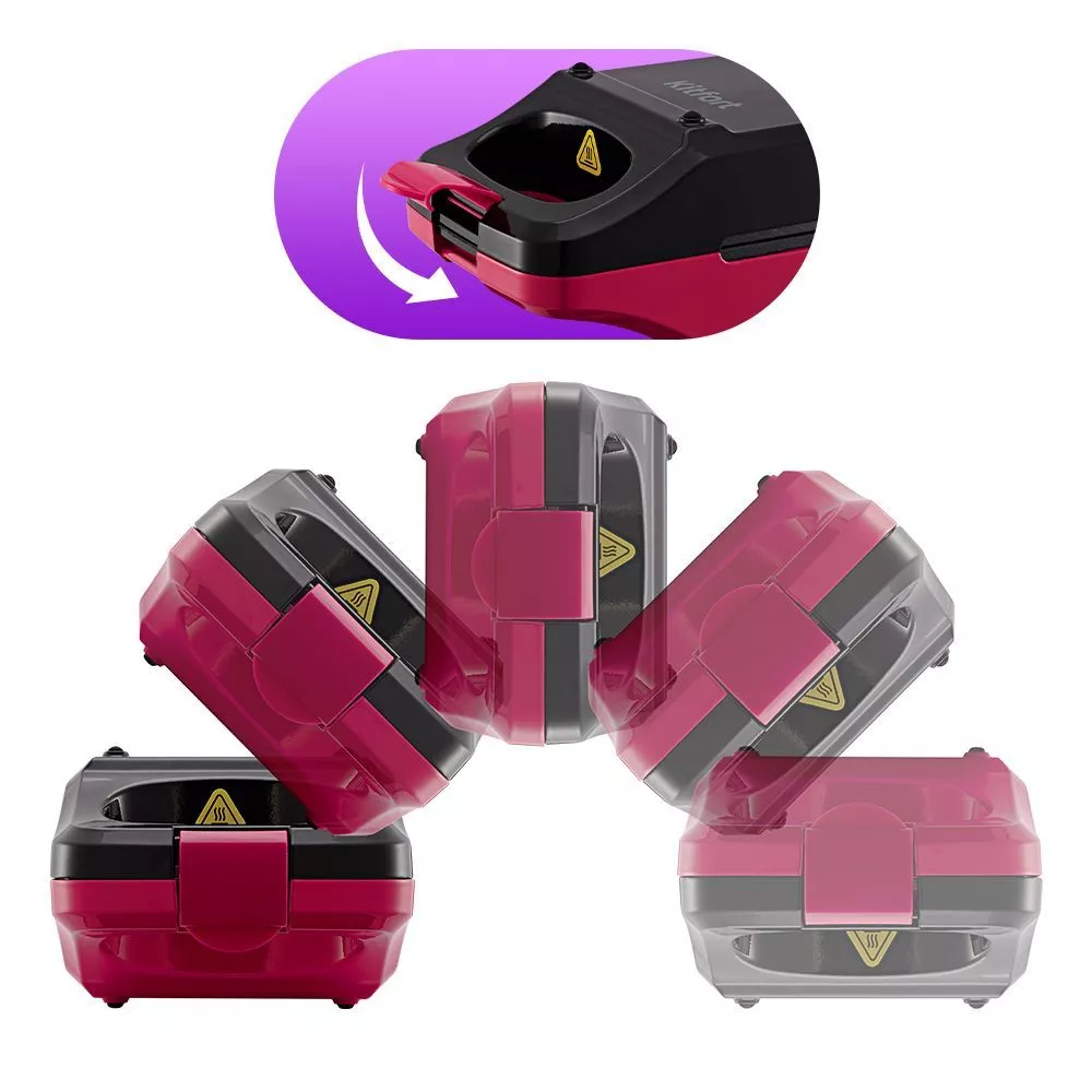 Зажим может использоваться как для удобного хранения вафельницы, так и для удобного переворачивания вафельницы. Просто залейте нужное количество теста, закройте крышку и закройте зажим. Вафельница не откроется, и тесто равномерно распределится по слотам.