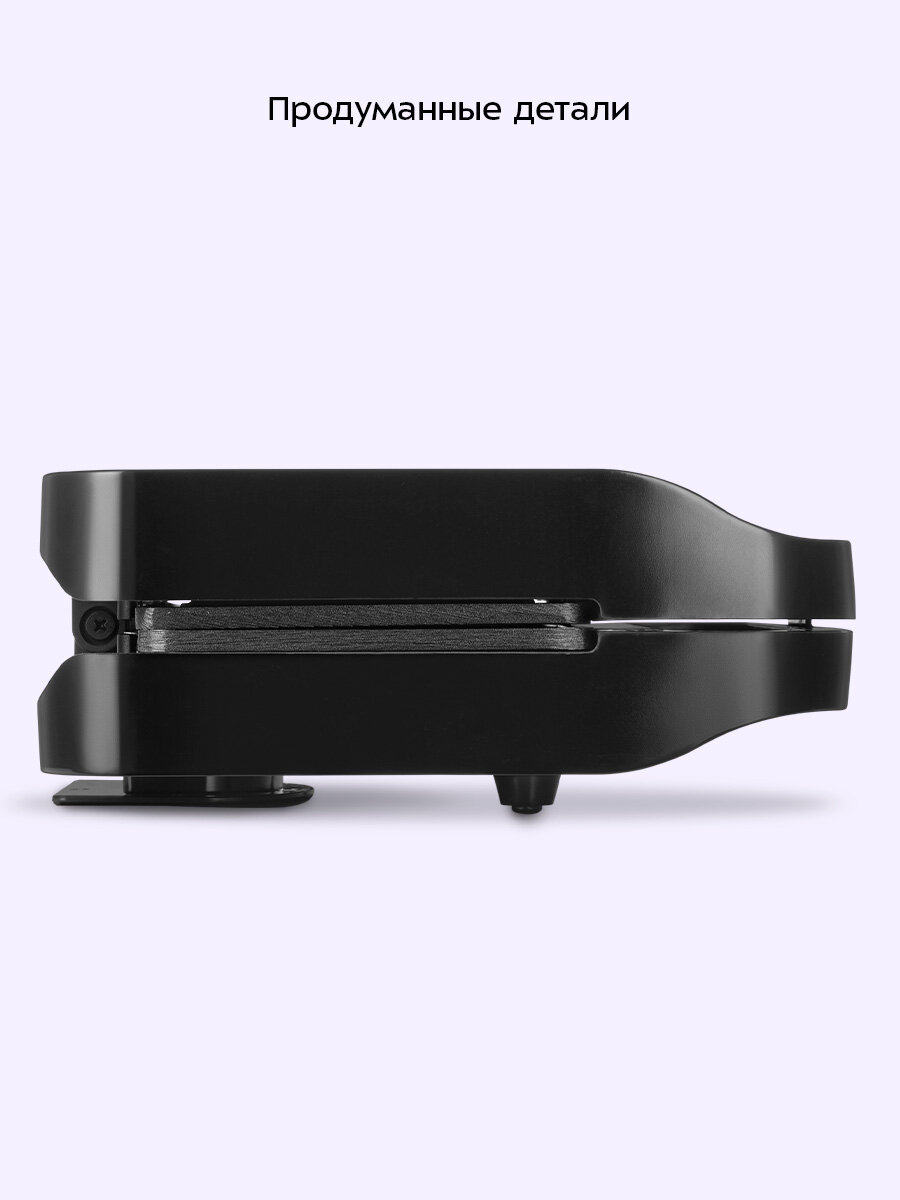 Вафельница оснащена термостатом для поддержания температуры панелей, а также индикатором питания и нагрева. Зажим на ручке удерживает крышку вафельницы в закрытом состоянии, что делает готовку, транспортировку и хранение более удобными.