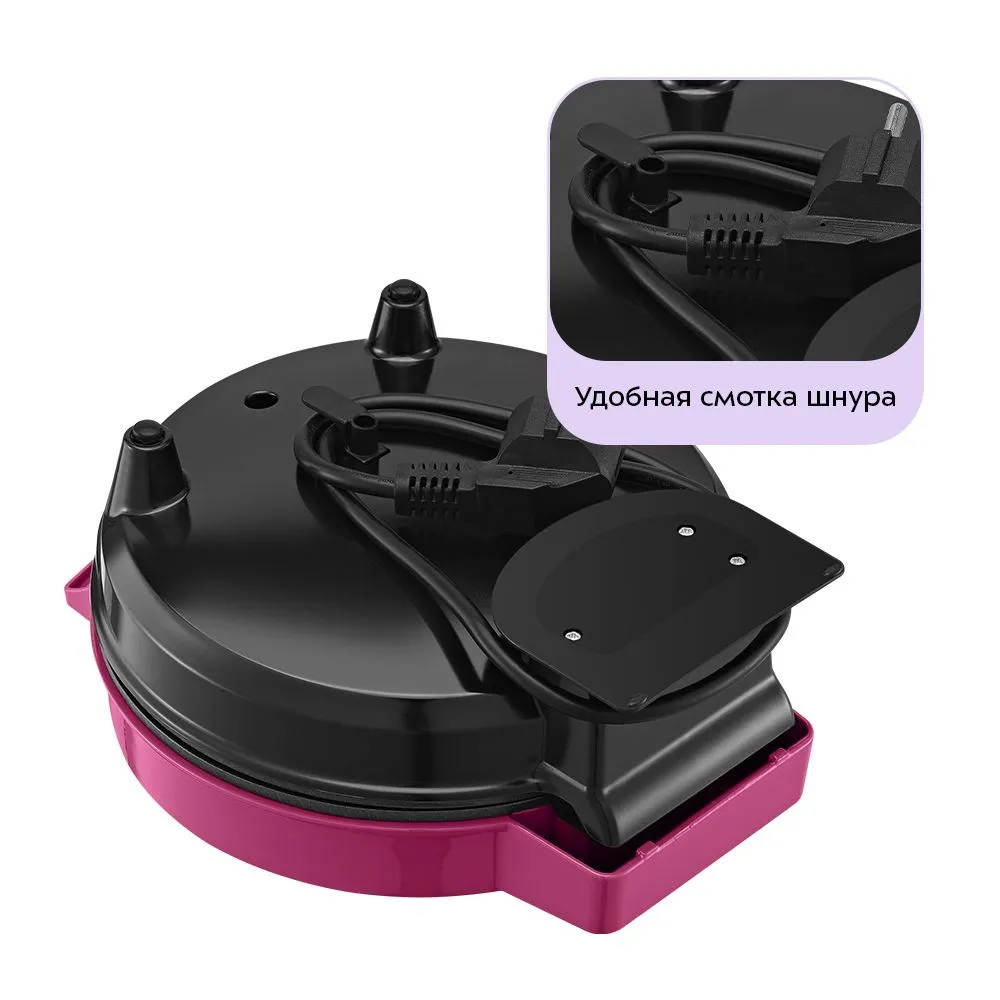 Благодаря минималистичному дизайну вафельница впишется в любой кухонный интерьер. Прибор компактный и не займёт много места на кухне. Длина шнура 0,5 метра. Противоскользящие ножки не дают прибору скользить во время готовки