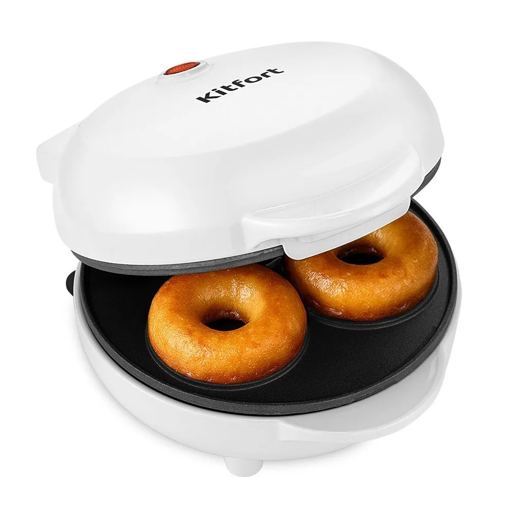 Вафельница КТ-4630 — идеальный кухонный помощник для любителей пончиков. Она готовит сразу три порции, экономя ваше время. Мощность 550 Вт позволяет быстро разогреть прибор и равномерно пропечь тесто.
