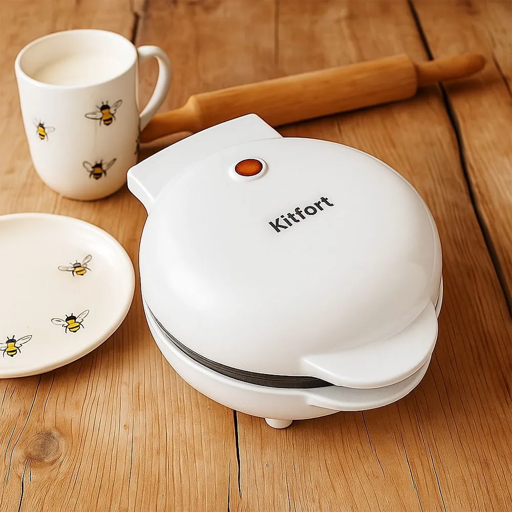 Вафельница имеет компактные размеры, что делает её удобной для хранения и готовки. Благодаря маленькому размеру, она не занимает много места на кухне, позволяя сэкономить пространство и создать более уютную атмосферу.