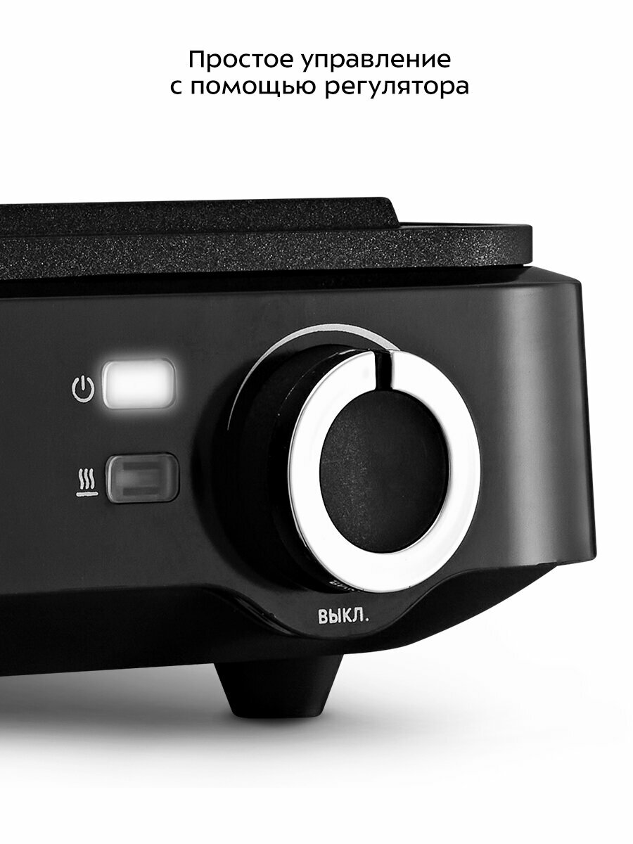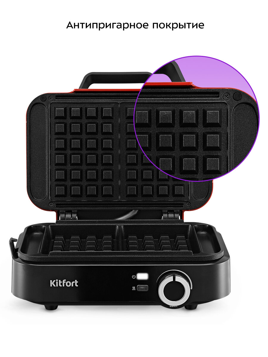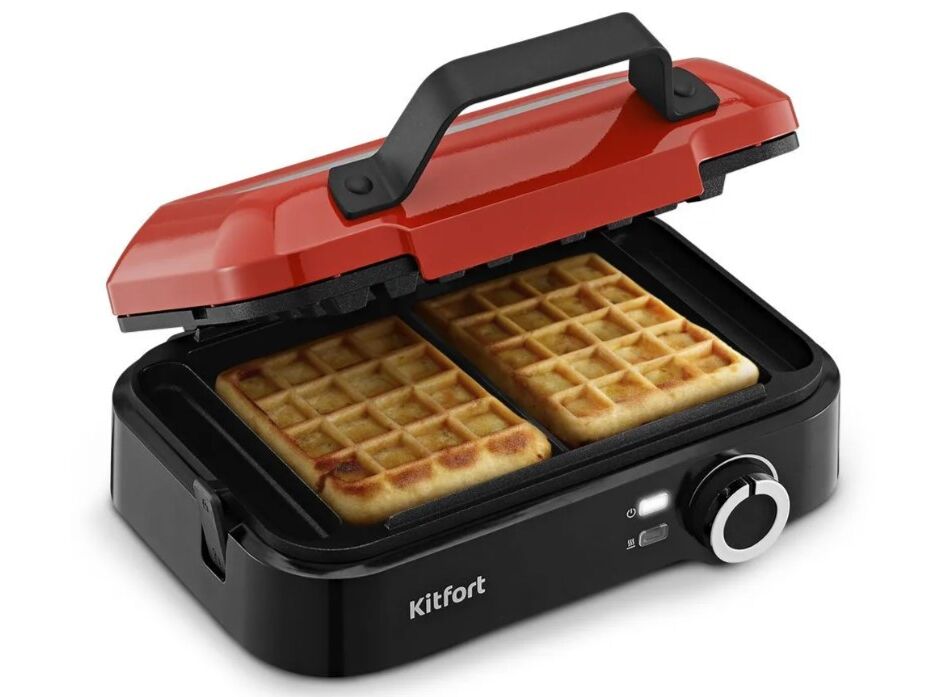 С помощью компактной вафельницы Kitfort КТ-4672 можно приготовить пышные бельгийские вафли на всю семью! В среднем выпекание 2 вафель до золотистой корочки займёт 3-5 минут. Прибор компактный и не займёт много места на кухне.