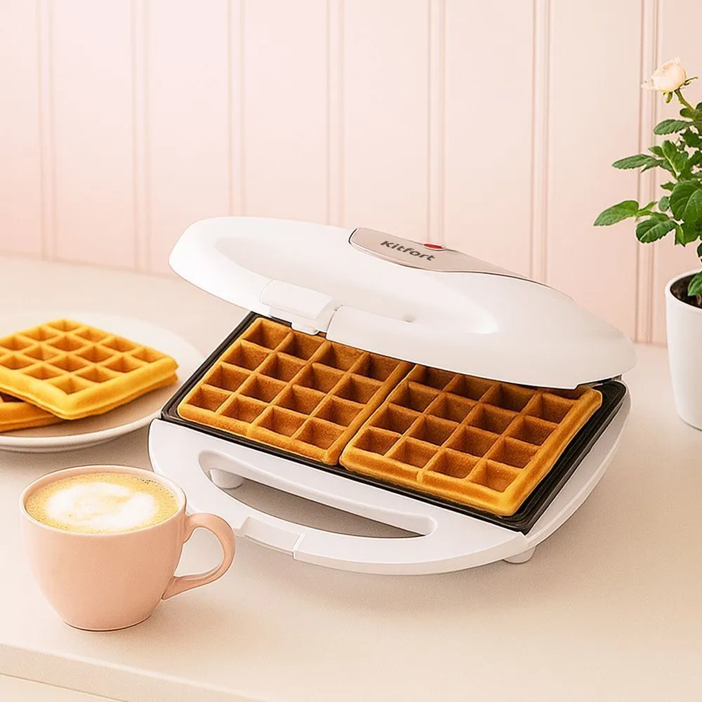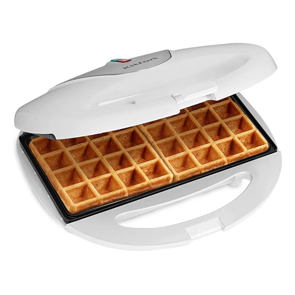 Вафельница КТ-4686 — компактное и простое устройство мощностью 750 Вт для приготовления бельгийских вафель. Выпекает одновременно 2 вафли, что ускоряет приготовление завтрака или перекуса. Экспериментируйте с различными видами теста и начинками