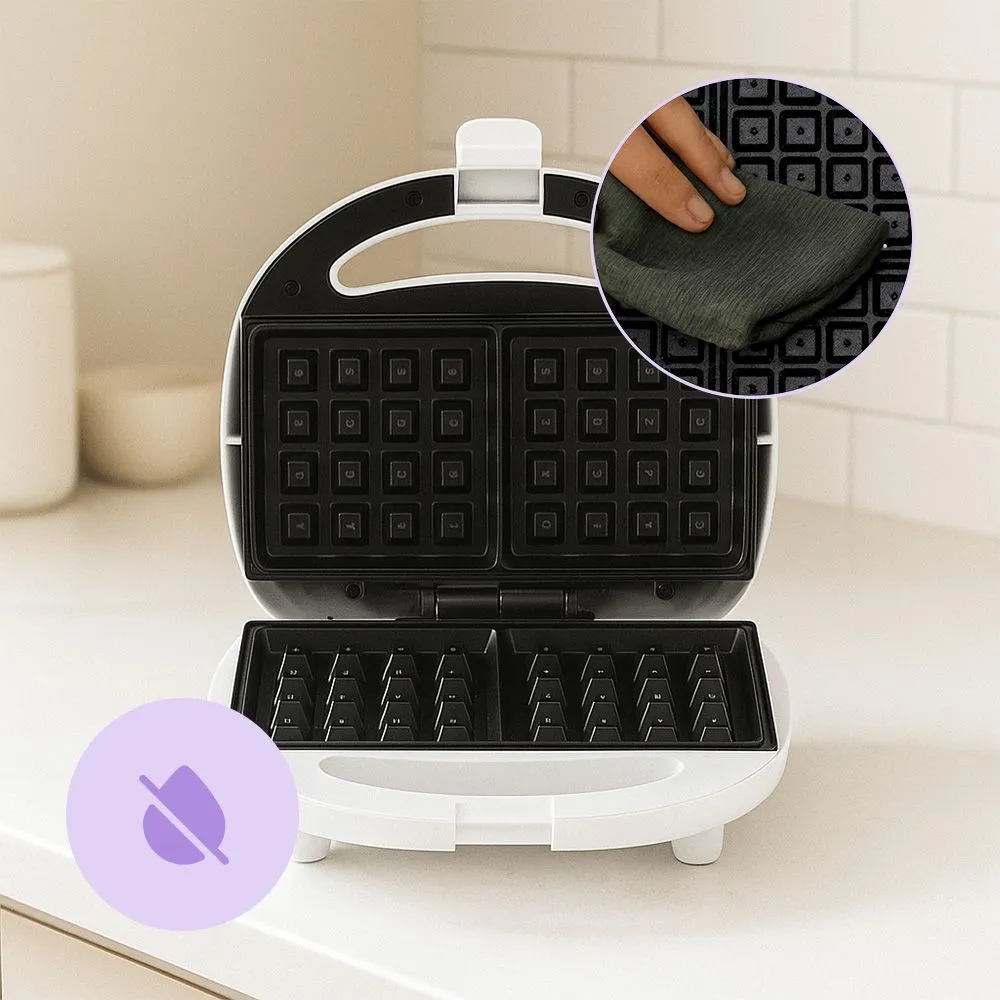 Благодаря ручке с фиксатором вафельница становится максимально безопасной для использования во время готовки и хранения. Также она надёжно удерживает вафельницу в закрытом положении, предотвращая ожоги паром или горячим тестом.