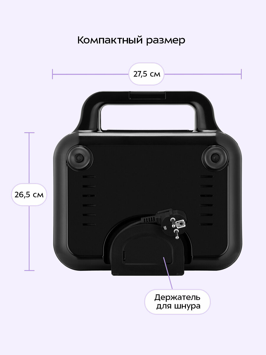 На дне прибора есть держатель шнура питания, что обеспечивает удобное хранение устройства, а эргономичный корпус позволит устройству не занять много места на вашей кухне!