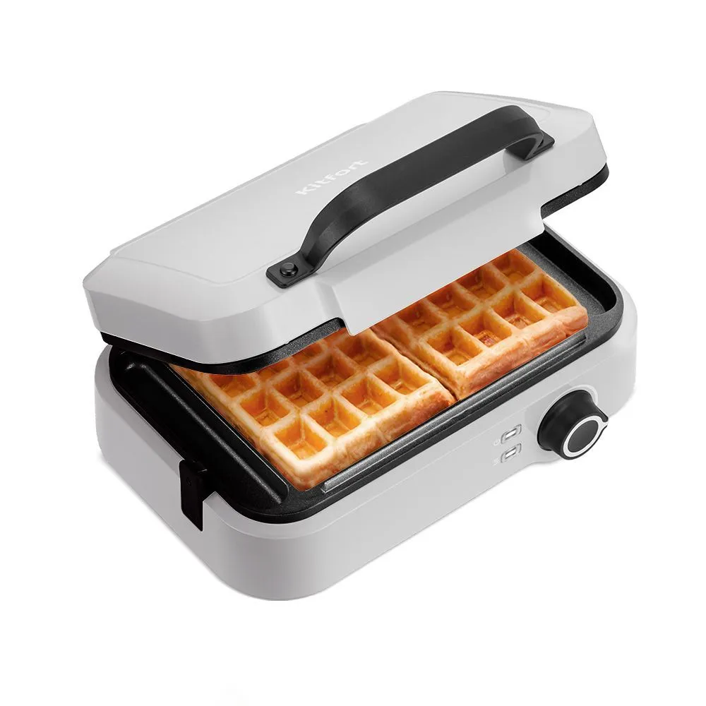 С помощью вафельницы КТ-4699 вы сможете испечь 2 бельгийские вафли за один раз. Данная модель оснащена регулятором температуры, что позволит вам настраивать температуру приготовления вафель.