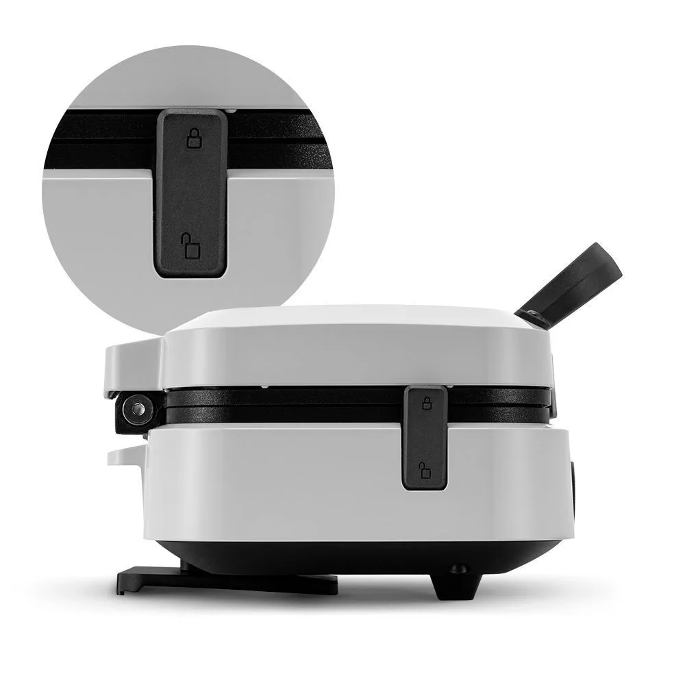 Фиксатор удерживает крышку вафельницы в закрытом состоянии, что делает готовку, транспортировку и хранение более удобными.