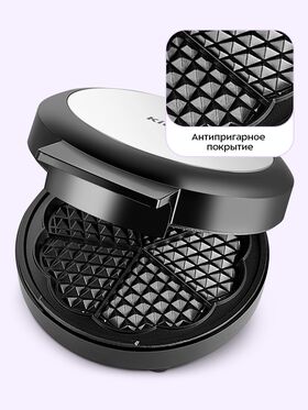 Антипригарное покрытие панелей вафельницы не даёт тесту прилипнуть в процессе приготовления и позволяет готовить с минимальным количеством масла. Также антипригарное покрытие облегчает чистку панелей.
