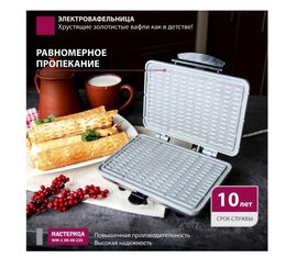 - Материал корпуса: металл, нагревательные элементы из пищевого алюминия, встроенный терморегулятор, наличие двойной системы защиты от перегрева. -Увеличенная высота нагревательных платформ обеспечивает более стабильную температуру пропекания, за счет этого происходит равномерный и быстрый процесс выпечки.