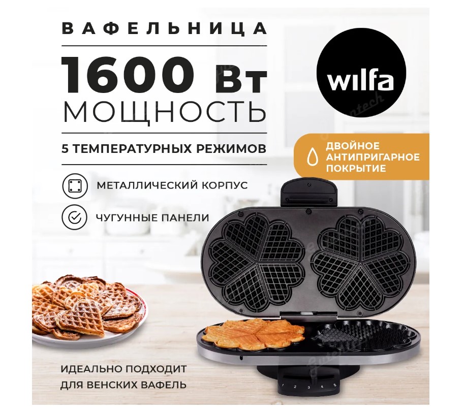 Вафельница бытовая Wilfa WAD-518 MS предназначена для быстрой и легкой выпечки венских вафель в форме сердечек.