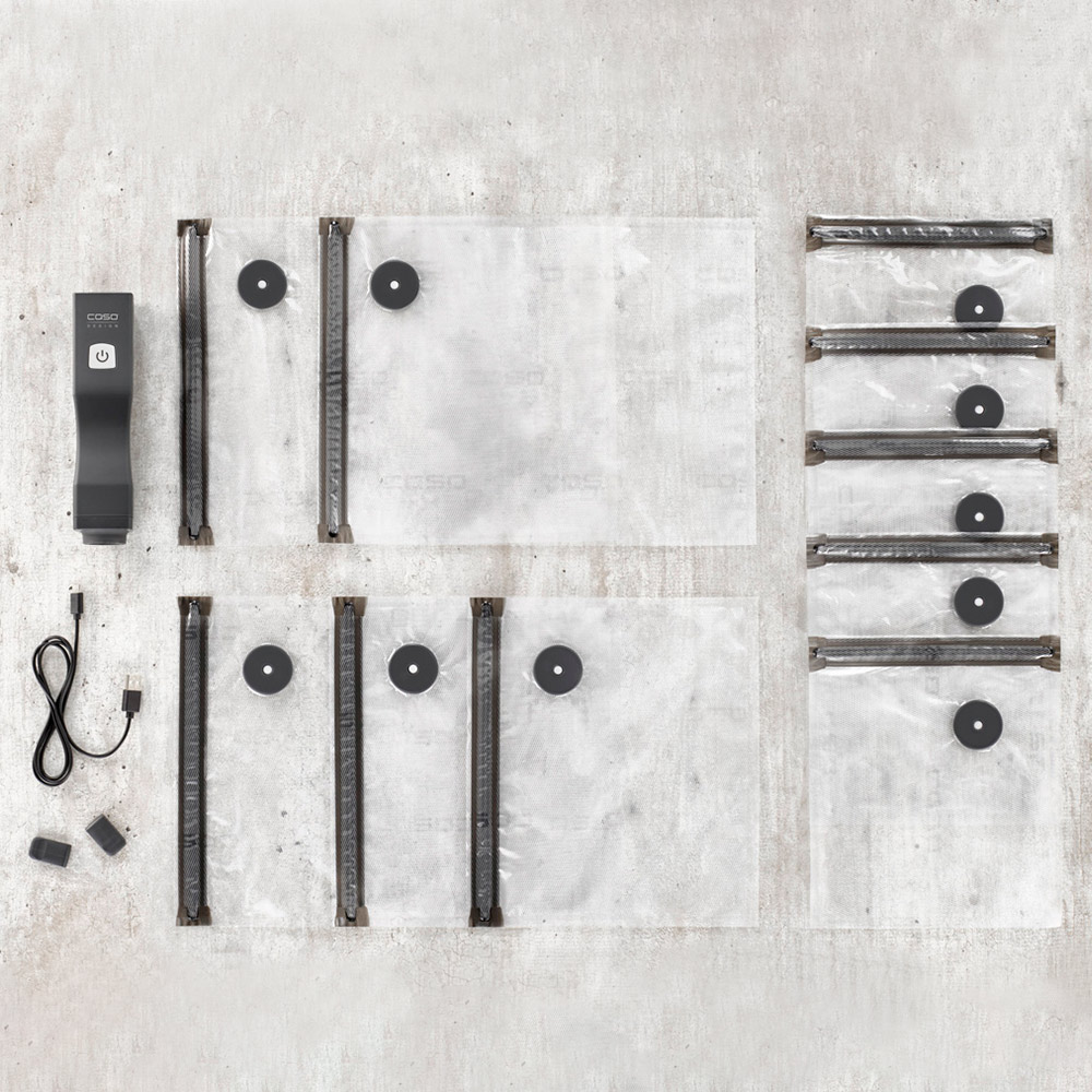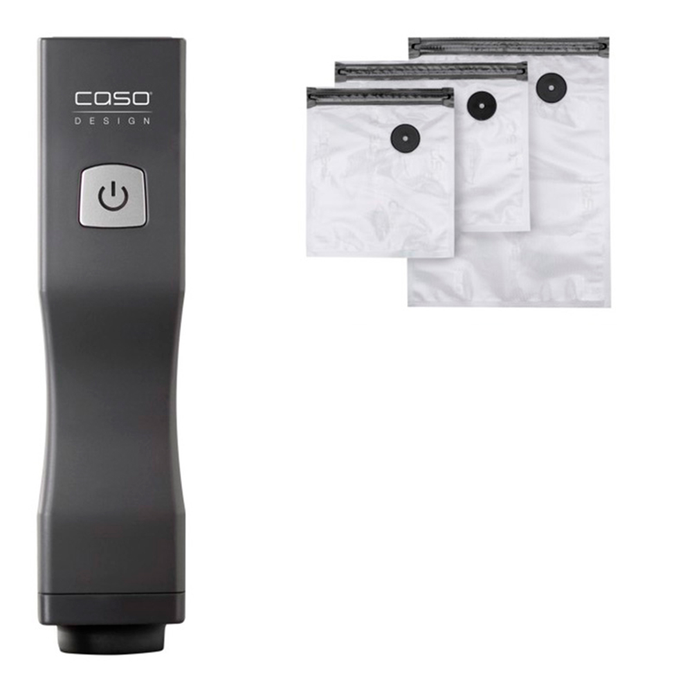 Ручной вакуумный упаковщик CASO Vacu OneTouch без камеры быстро откачивает воздух из пакетов и контейнеров. Используйте для заготовки и упаковки продуктов на месте, даже если рядом нет розетки. Сохраняйте продукты в вакууме сразу после разделки. В отличие от полностью ручных устройств CASO Vacu OneTouch работает на встроенном Li-ion аккумуляторе, и откачивает воздух с давлением до 0,4 бара и достигает производительности 3 л/мин.
