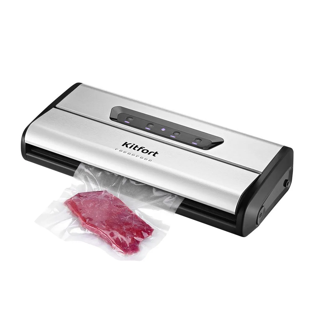Вакууматор Kitfort КТ-1515 обеспечит долгие сроки хранения ваших любимых продуктов. Продукты, упакованные под вакуумом, сохраняют дольше аппетитный вид, вкус и полезные свойства, а портятся существенно дольше по сравнению с обычными условиями хранения.