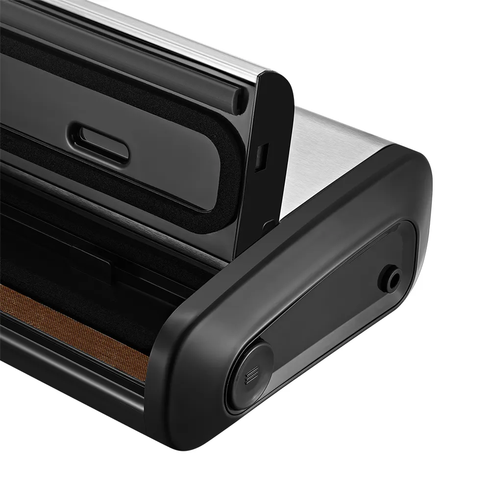 Максимальная ширина пакета для вакуумирования 28 см. Создаваемое разрежение (максимум) 0,6-0,8 бар.